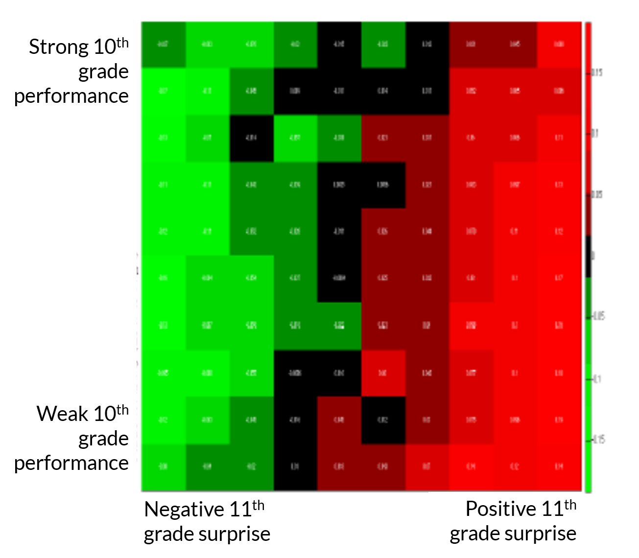 • Positive surprise: Learning you did better in 11th grade than would be suggested by your 10th grade position led to less effort for final year exams (red on the chart).