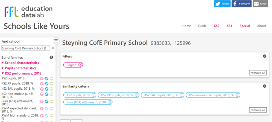 I ask a much less demanding question – how are they doing compared to other schools that seem to serve similar types of communities? Thankfully, FFT Education Datalab has a brilliant website where you can pick what you mean by ‘similar’ (e.g. similar FSM, EAL, size, region, prior attainment, etc….) and take a look at the outcomes.