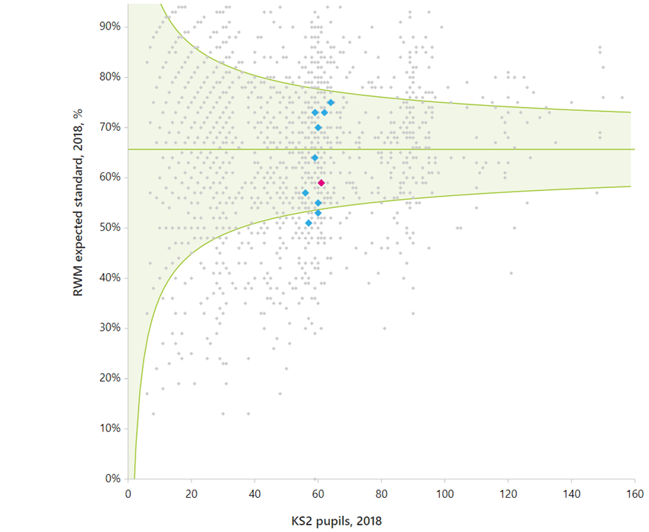 Some argue it leads to a ‘poverty of expectations’ since deprived schools would only be compared to other deprived schools. This is an assertion that doesn’t stand up to interrogation of the data. Taking primary schools as an example, closing the gap between a lower performing primary and the median primary within each group of similar schools would lead to a national 6 percentage point improvement on the EXP in RMW metric. Getting all primaries up to the 90th percentile within their similar group would lead to an improvement of 17 percentage points. Sure, this isn’t the paradise where every primary school does as well as the best in the country, but (in case you hadn’t noticed) bashing schools serving disadvantaged communities over the head with the results of those who serve affluent communities doesn’t seem to have brought us to the promised land either. I’d take a mere 6 percentage point improvement in the headline pass rate in exchange for dropping the school bashing based on voodoo statistics any day.